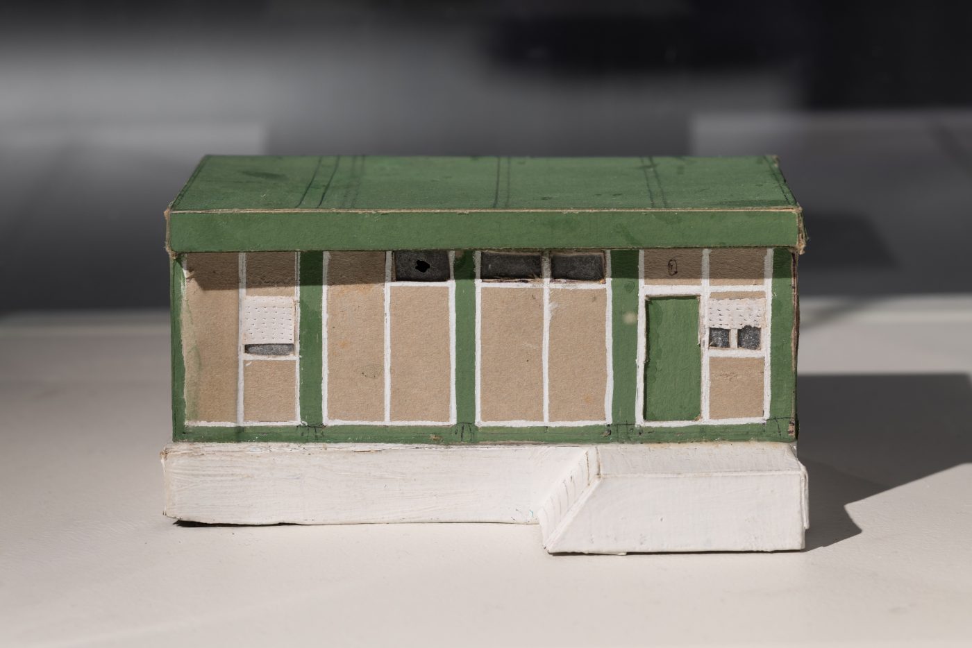 House No. 17 is connected to Carlos Bunga’s Model series, begun in 2002. Whereas his smaller cardboard constructions are ambiguous and formally loose, House No. 17 is a miniature, detailed, and crafted from a cereal box. The sculpture is modeled on one of the artist’s childhood homes in São Bartolomeu dos Galegos, just north of Lisbon. After years of living in converted institutions and religious centres for refugees, Bunga’s family relocated to this house, part of a social housing initiative built from prefabricated materials intended to last only a decade. In reality, families lived in them for nearly nineteen years, until their visibly degrading state led to demolition in 2002.
